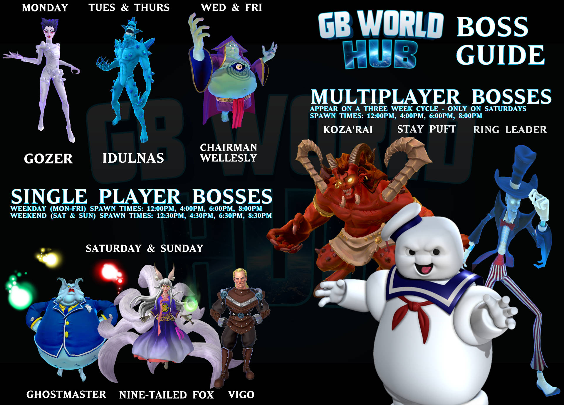 • Weekend (Sat & Sun) Spawn Times: 12:30pm, 4:30pm, 6:30pm, 8:30pm